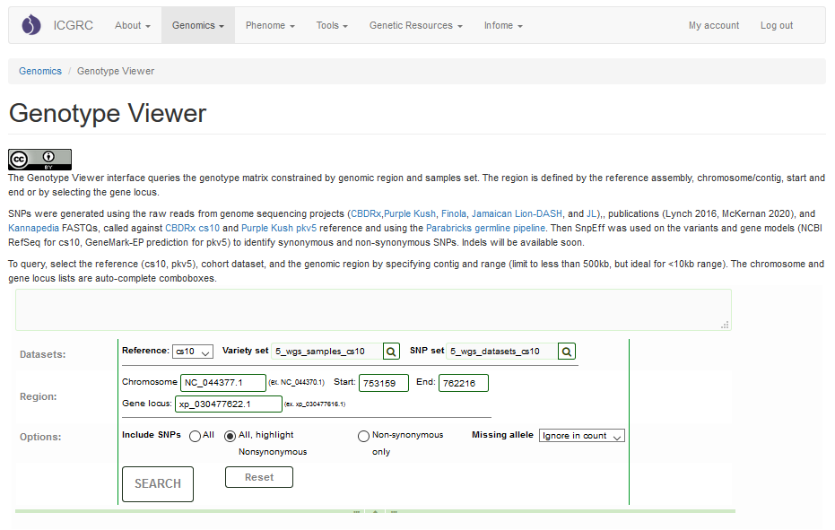 Users can search SNP data generated by variant calling against the selected reference genome.