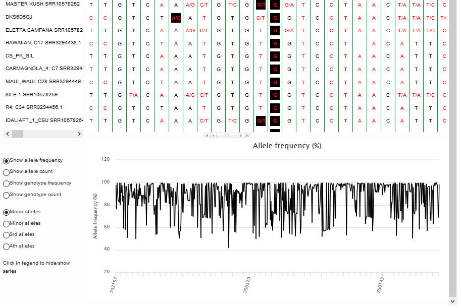 Genotype Viewer is a page where users can search for the SNP genotype based on the genome assembly/reference genome and cohort dataset.